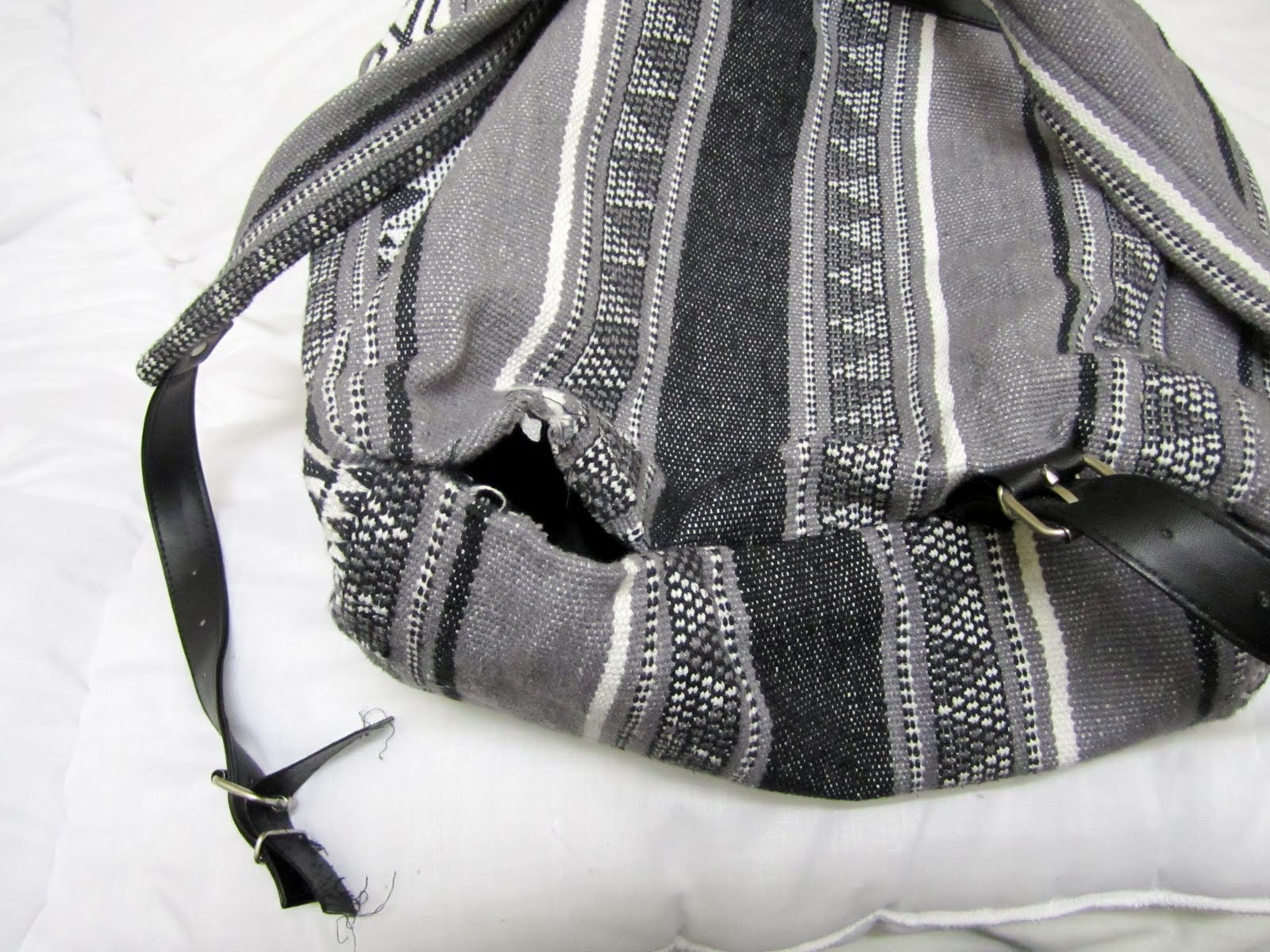Today my bag broke, and it was both sad and embarrassing. I was at the library and overestimated the amount of books my bag could carry. I had the bag only on that one shoulder walking down the stairs when it was suddenly on the floor, strap ripped free. Lauren's reaction, however, involved, "I watched this happen to Veronique's bag too!" What person witnesses two separate backpack straps break in a matter of weeks? But I have grown to love this bag so this is quite sad. I'm hoping somehow it can be fixed...
